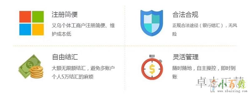 原文www.xbaixing.com义乌个体户主要是收汇结汇方便,且不需要做账报税,但是不能转汇外币